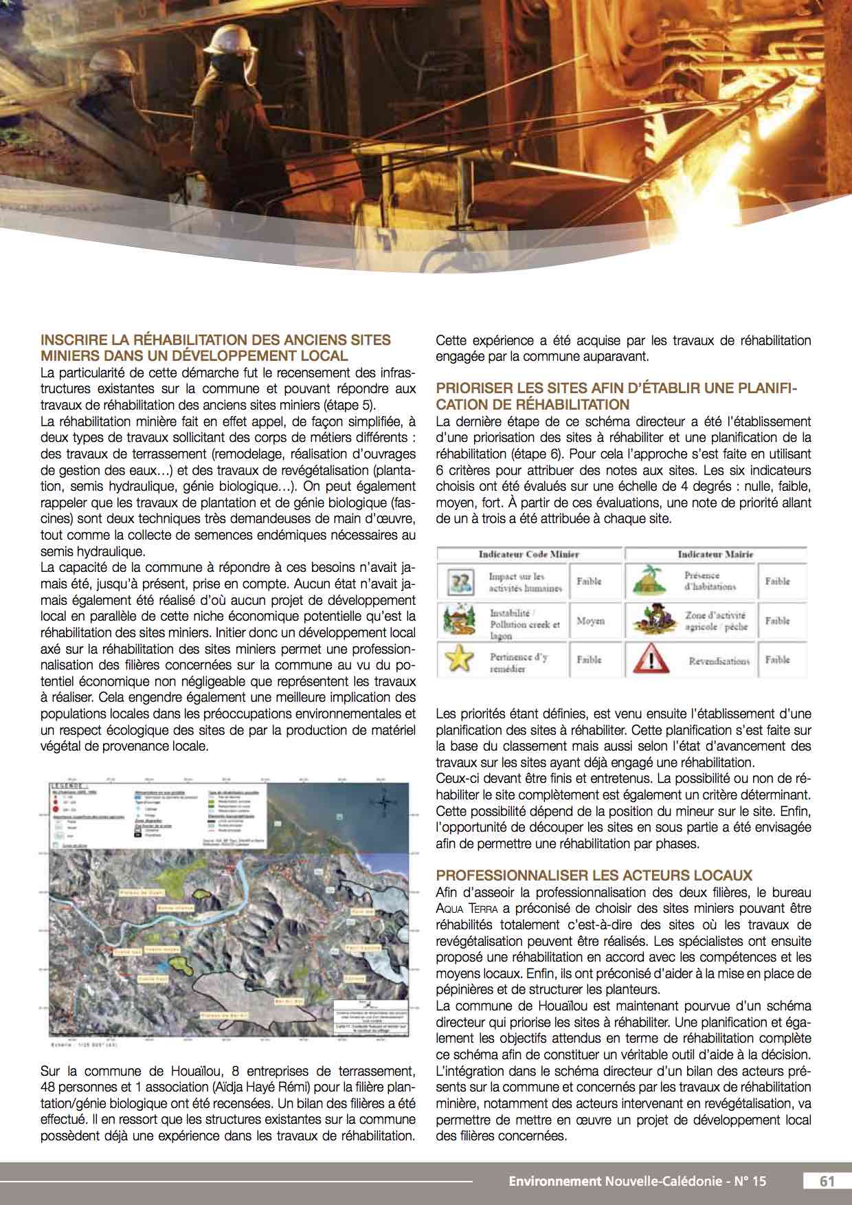 Présentation du travail d'Aqua Terra au niveau de la mairie de Waa Wi Luu pour laquelle un schéma directeur des anciens sites miniers a été réalisé avec un objectif de développement durable - Magazine Environnement 2010