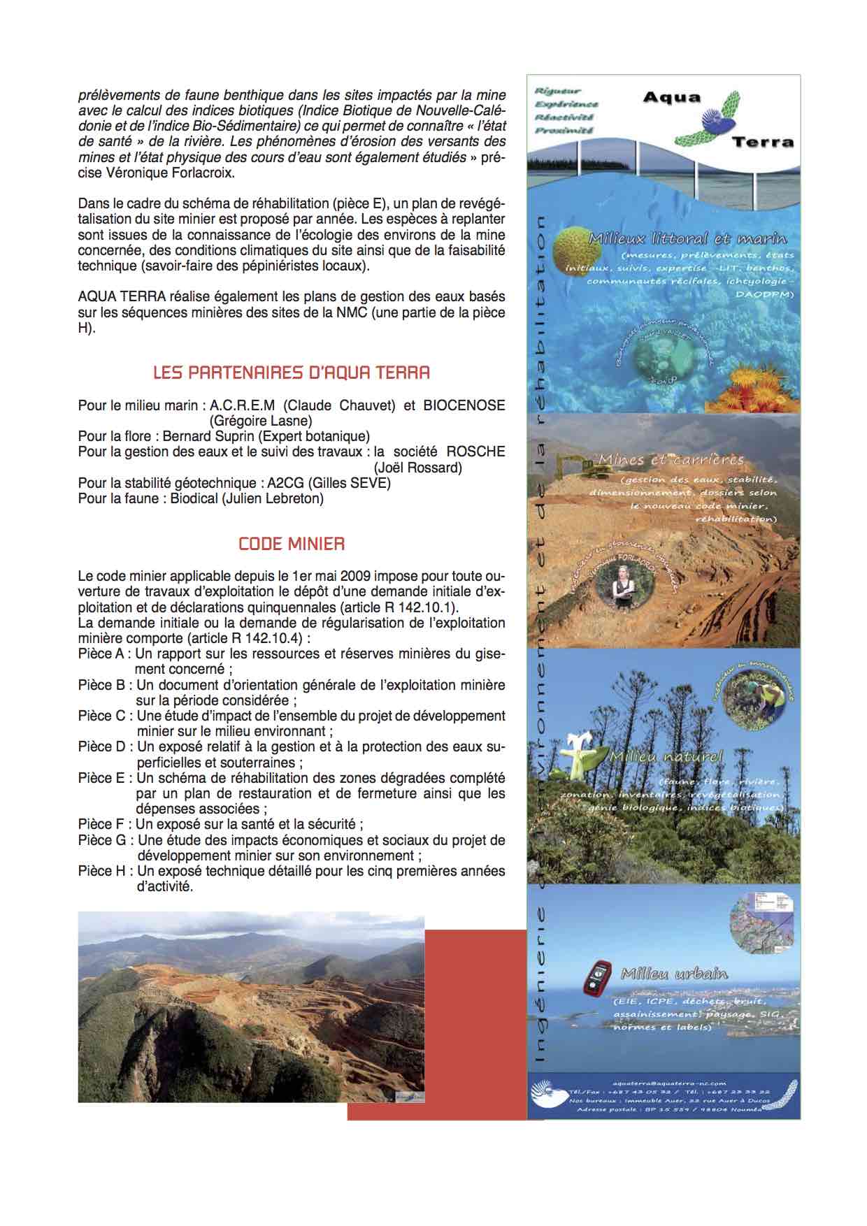 Présentation du travail d'Aqua Terra depuis la mise en place du Code minier en 2019 mais également des codes de l'environnement des Provinces Nord et Sud - Magazine Do-Oulo 2012