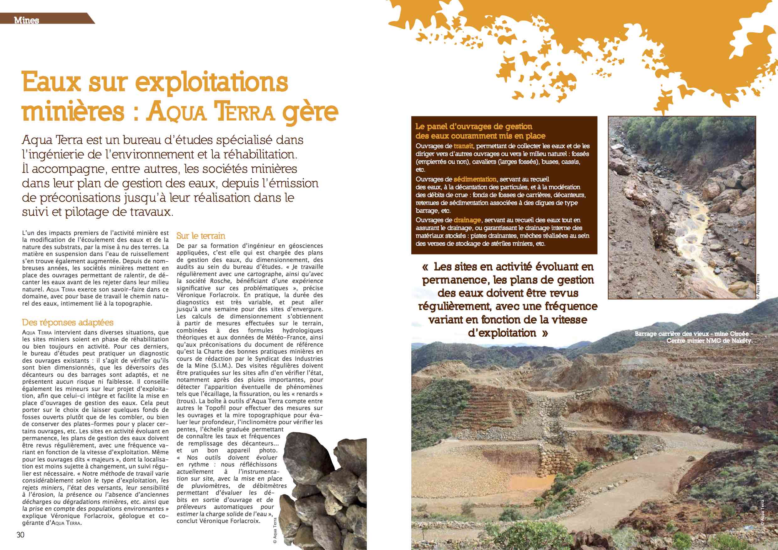 Présentation du travail d'Aqua Terra au niveau de la gestion des eaux sur mine - Magazine Environnement 2013